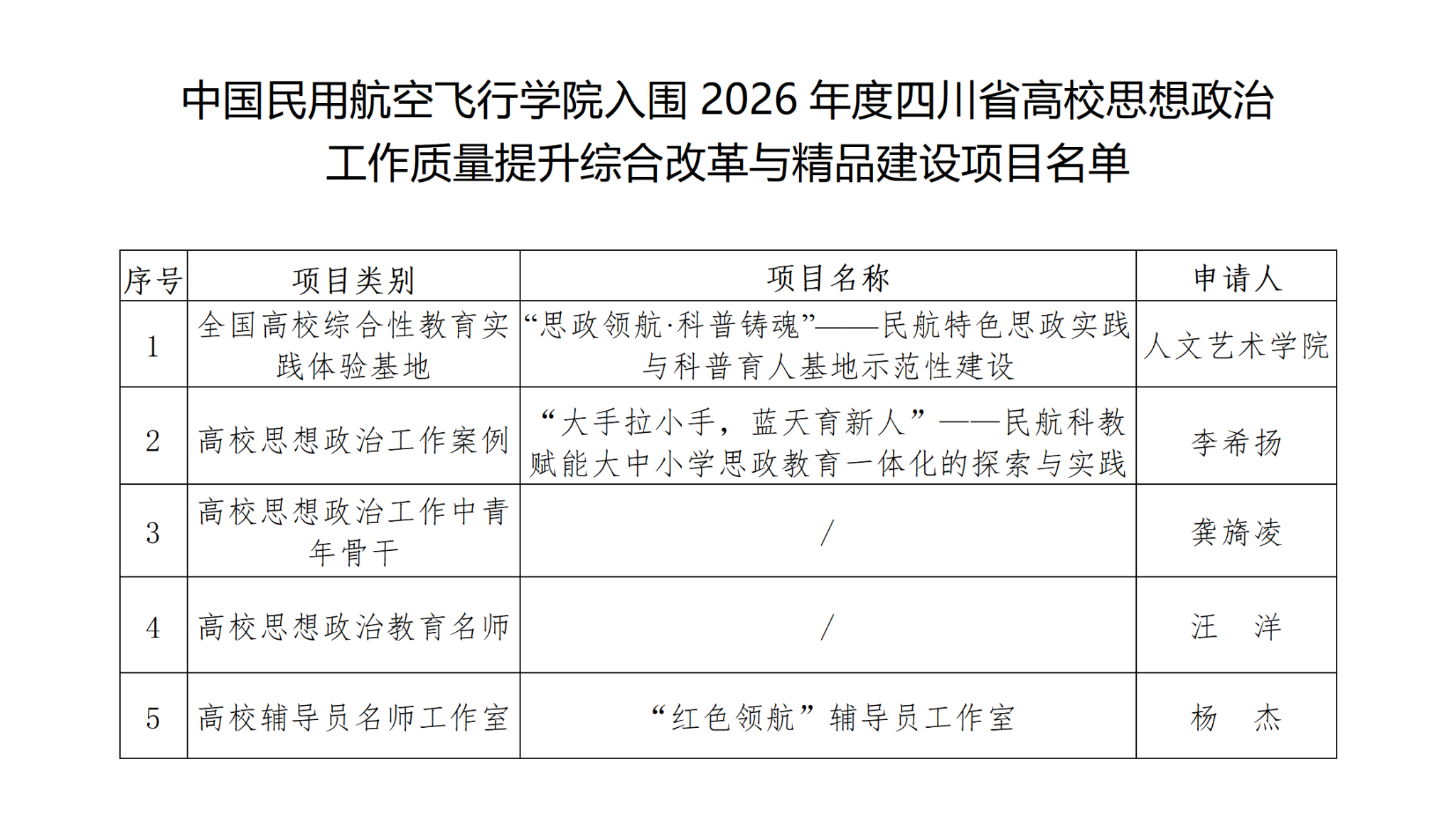 本网讯 杜雨洲 罗岚 报道:近日,四川省教育厅公布2026年度全省高校思想政治工作质量提升综合改革与精品建设项目入围名单,学院共有5个项目位列其中,实现新的突破。