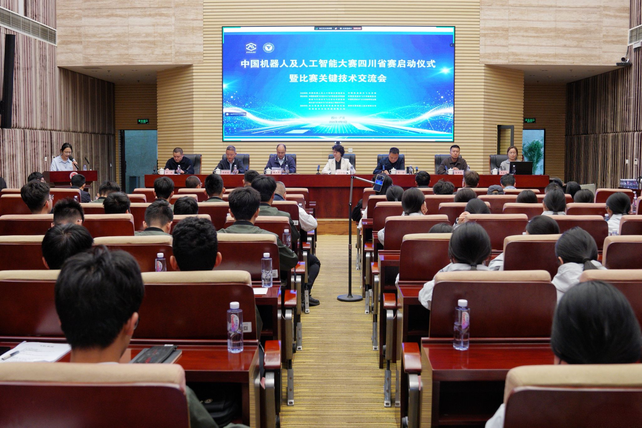 本网讯 麻顺坤 王在俊 报道:4月15日,第二十八届中国机器人及人工智能大赛四川赛区启动仪式暨技术交流会在学院举行。会议介绍了2026年度四川赛区比赛计划,各赛项负责人就赛项规则及其关键技术与指导老师和参赛同学进行沟通交流。中国机器人及人工智能大赛组委会执行主任方宝富、四川省竞赛组委会秘书长袁颖、学院工会主席于金艳出席会议,学院相关职能部门、各赛项负责人以及来自省内高校赛项指导老师和参赛同学参加本次启动仪式。