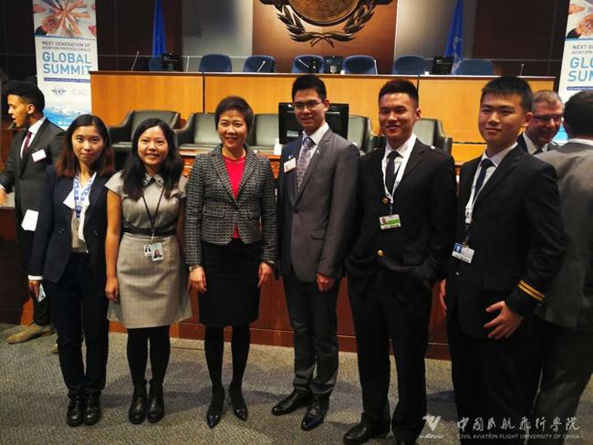 大会期间,中飞院学子以精湛的专业知识、良好的民航业职业素养和优秀的英语表达与沟通能力获得了业内专业人士的好评。国际民航组织秘书长柳芳博士在与获奖学子会面中,鼓励同学们要有开放的国际视野和精良的多元化专门知识,并与同学们合影留念。