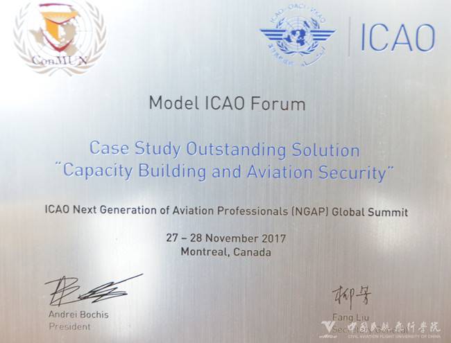 本网讯 殷东来 报道:国际民航组织下一代航空专业人才全球峰会于11月27-28日在加拿大蒙特利尔举行。中飞院派出代表团参会并在峰会首次设立的模拟国际民航组织论坛案例研究竞赛活动中获得佳绩。