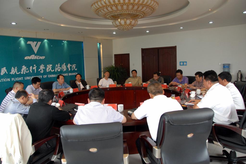 本网讯 杨德贵 摄影报道 初夏中原大地,绿意盎然,生机勃勃。5月29日,郑孝雍校长率领由校长助理李勇军、学校副总会计师刘洪元、新津分院院长王小龙、广汉分院院长何永威、绵阳分院院长徐立剑、遂宁航站站长卢智文、飞机修理厂厂长赵成荣和学校后勤总公司总经理李静、财务处处长程仕双、审计处处长王勤科等组成的工作组到洛阳分院,就分院飞行训练和航空运输生产的持续平稳发展进行调研工作。