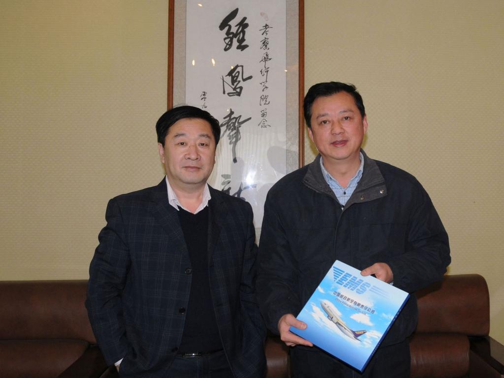 < 本网讯 刘蓉摄影报道>元月25日。中国邮政航空公司总经理李玉峰率公司人力资源部经理韩秀华、飞行技术部经理廖向农、办公室副主任孔凡昌到访我校。我校党委书记朱勇、副校长陈布科在桂苑宾馆二楼会议室会见了李玉峰总经理一行。参加会见的还有飞行技术学院副书记高荣川、招生处副处长郑勇、校办公副主任余江、合同管理中心王雪峰等。
