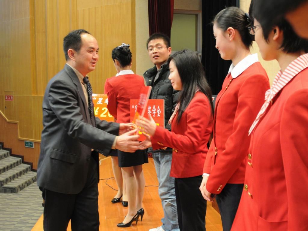 昆明星耀高科技发展有限公司董事长邓斌为获得“星耀”奖学金的学生代表颁奖 200名同学获此殊荣