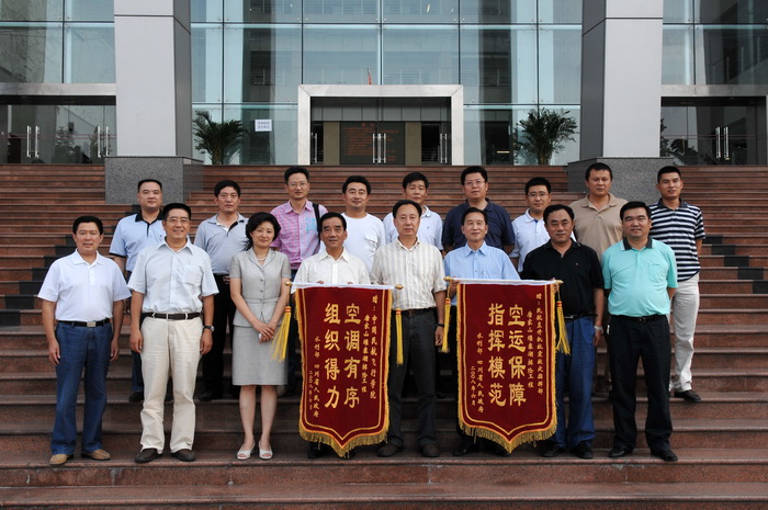 代表水利部、四川省人民政府向民航直升机抗震救灾指挥部赠送锦旗