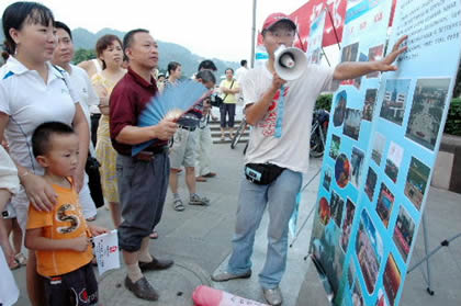 在摆好展板后,学子们又拉开了万人签名支持奥运的横幅。广场上的市民争先恐后的挤到横幅前签上自己的名字。不到半个小时,整条横幅就签满了名字。