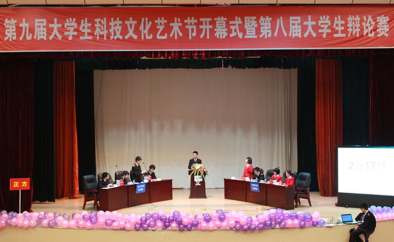 开幕式吹响了第九届大学生科技文化艺术节的号角,为全校大学生搭建了一个展现科技文化的舞台。与此同时作为我校精品活动的第八届大学生辩论赛也拉开战幕。辩论赛第一场的对阵双方是航空工程学院和外国语学院。正方航空工程学院观点为:山寨文化,应该宽容;反方外国语学院观点为:山寨文化,应当抵制。