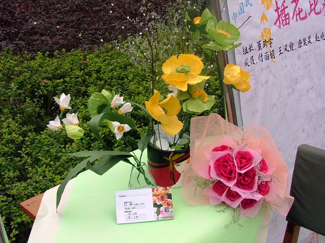 本次插花比赛的作品于11月初在校新食堂、校园超市、教学办公楼外展出,其精美的制作工艺、美伦美奂的色彩、丰富的寓意吸引了广大师生的目光,获得了广泛好评。