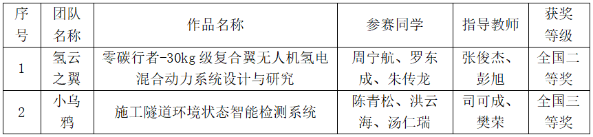 在成功入围全国总决赛的队伍中,中飞院航空电子电气学院斩获二等奖1项、三等奖1项。其中由无人机先进动力实验室彭旭老师和微发创新与绿色航空动力实验室张俊杰老师联合指导的“氢云之翼”队的作品“零碳行者--30kg级复合翼无人机氢电混合动力系统设计与研究”获得全国二等奖。