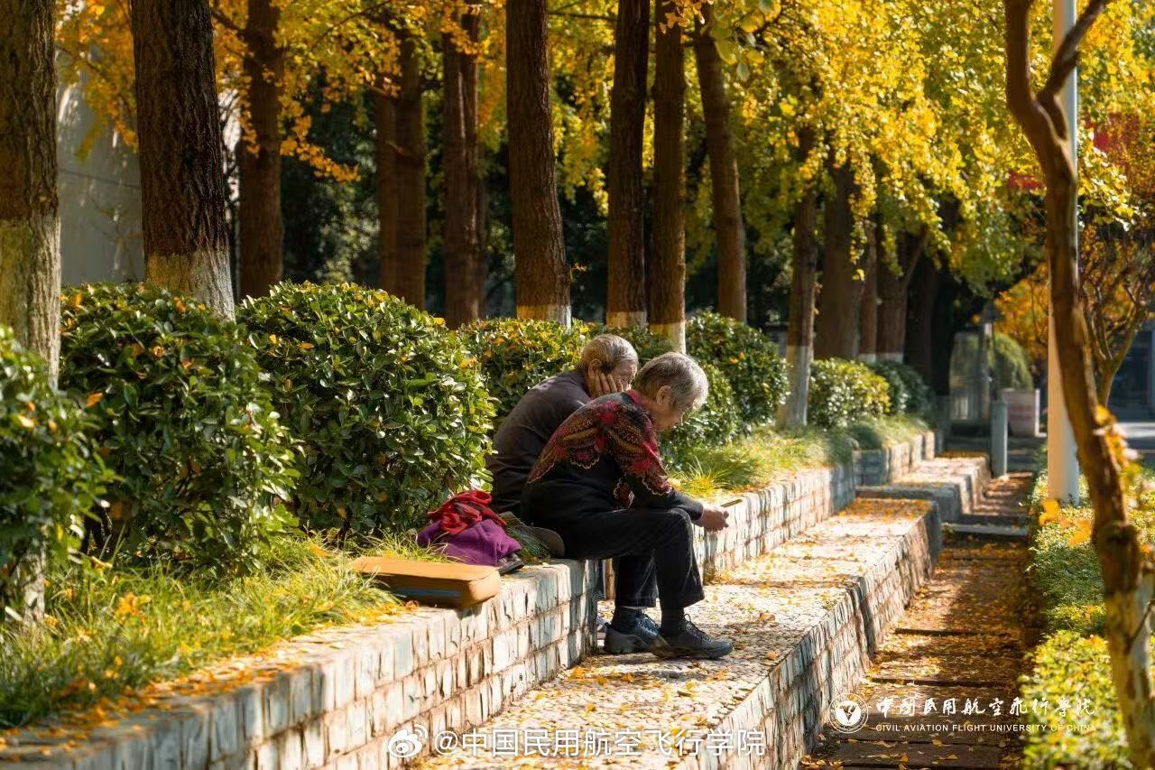 #早安,中飞院# 清晨的风裹着秋意掠过中飞院,阳光透过金黄银杏叶洒下细碎光斑,...