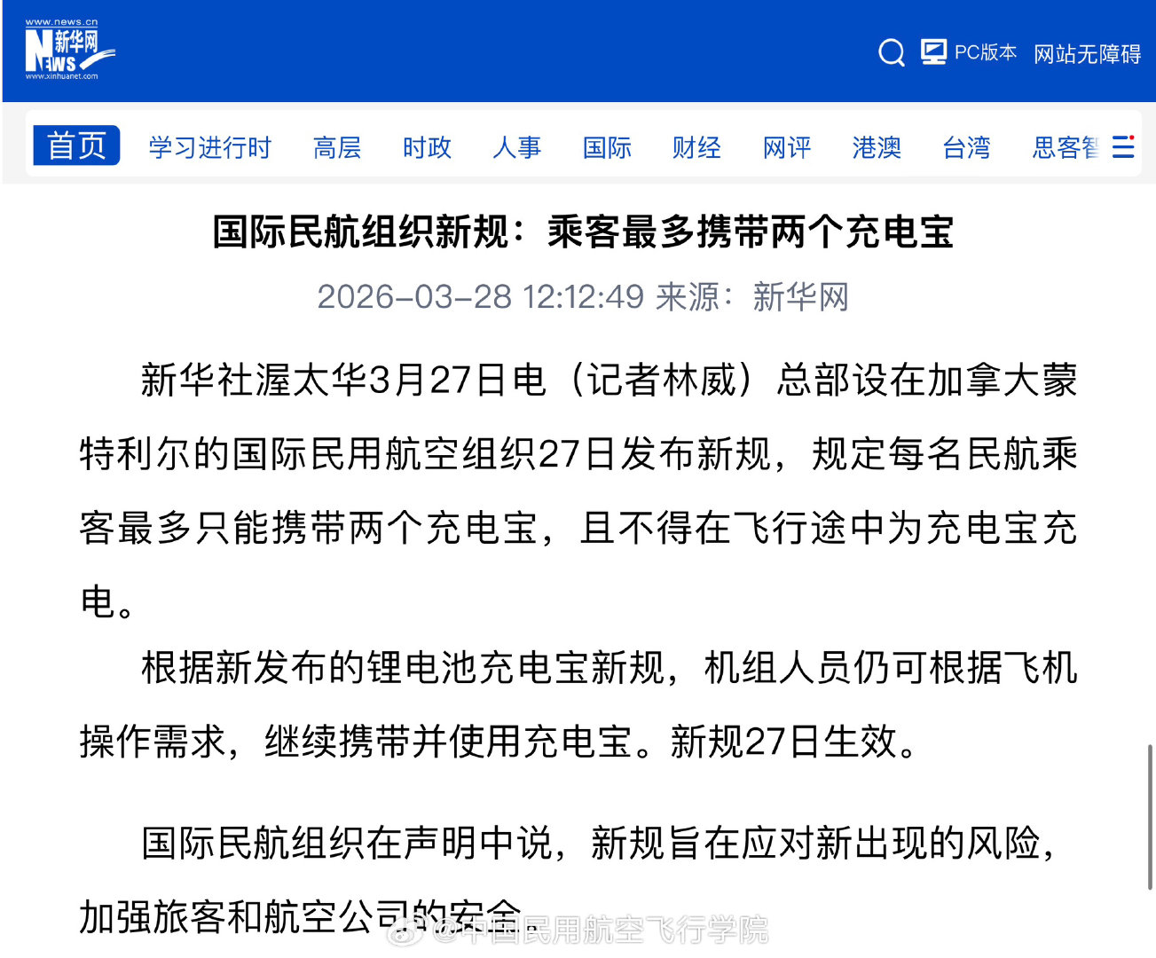 #民航小知识# 依据国际民航组织(ICAO)最新规定: 数量限制:每位乘客最多携带两个充电宝。 充电禁令:全程禁止在飞行途中为充电宝充电。 特别豁免:出于飞机操作需求,机组人员不受此限,可继续携带和使用。 ...