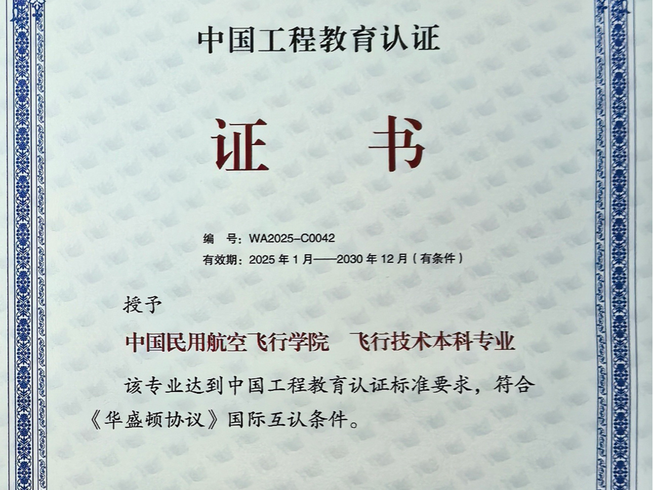 中飞院飞行技术专业通过教育部工程教育认证 成为全国唯一